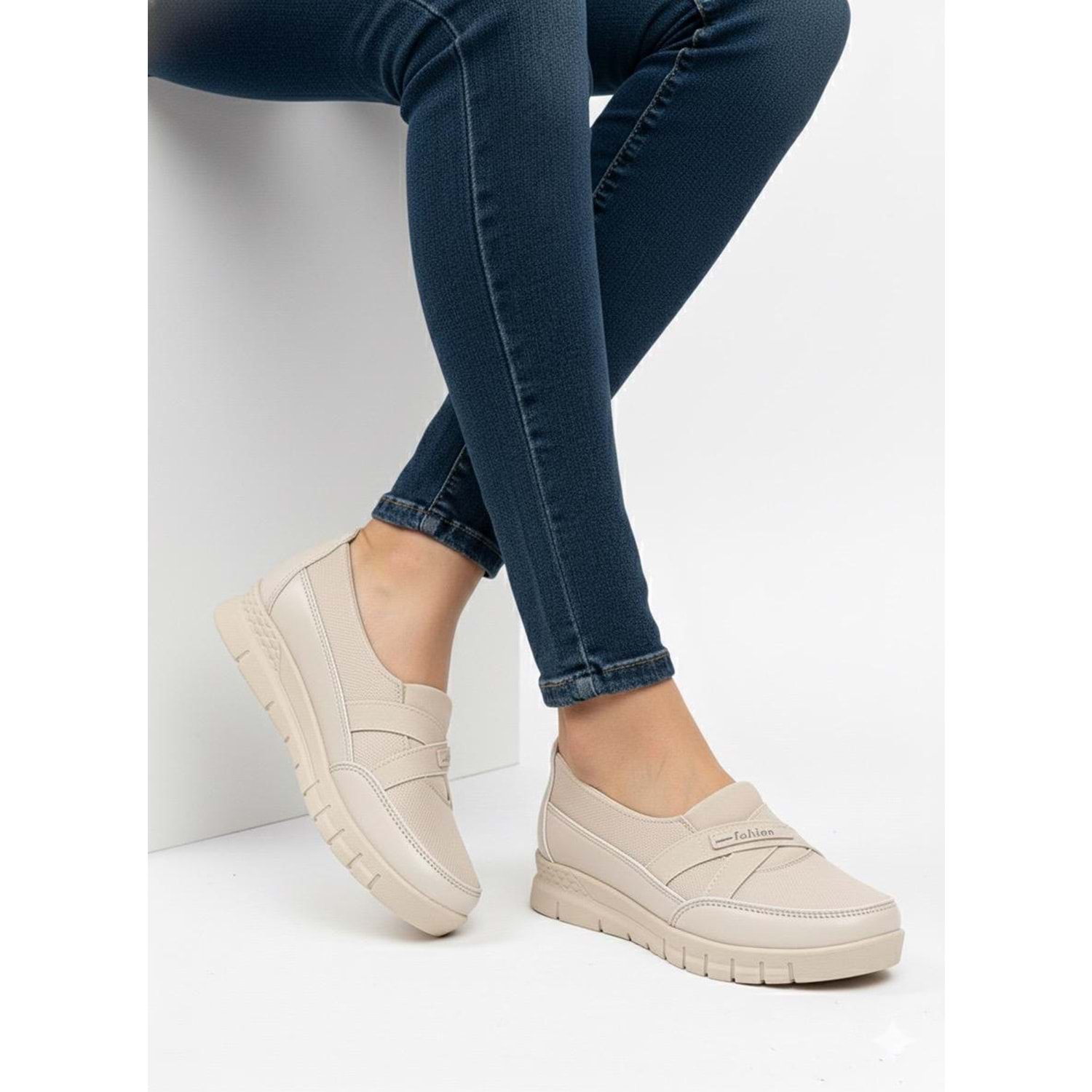 Kadın Günlük Rahat Ortapedik Ayakkabı 1325 - Krem - 40 - BTMK01325-Krem-40