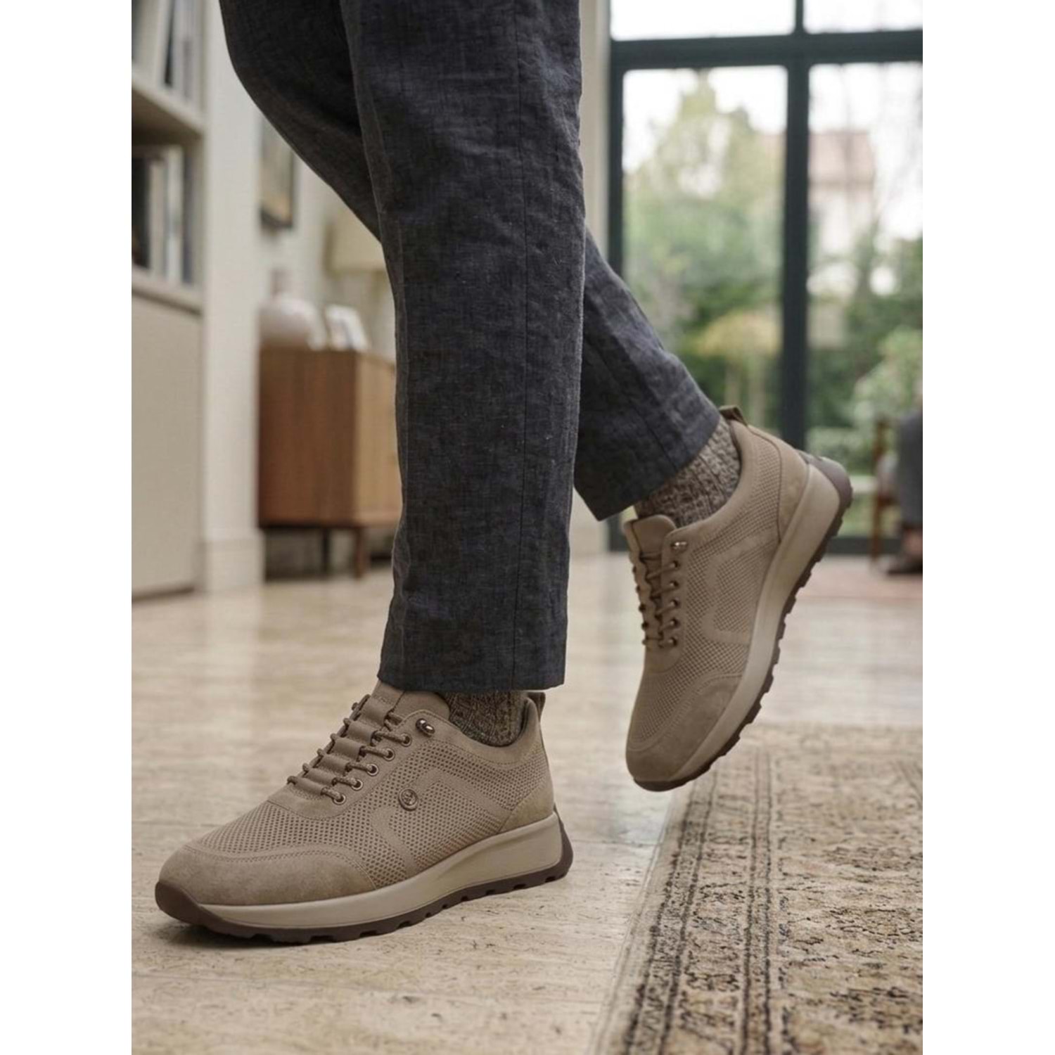 Hakiki Deri Günlük Spor Ayakkabısı - Bej - 40 - BTMK01328-Bej-40